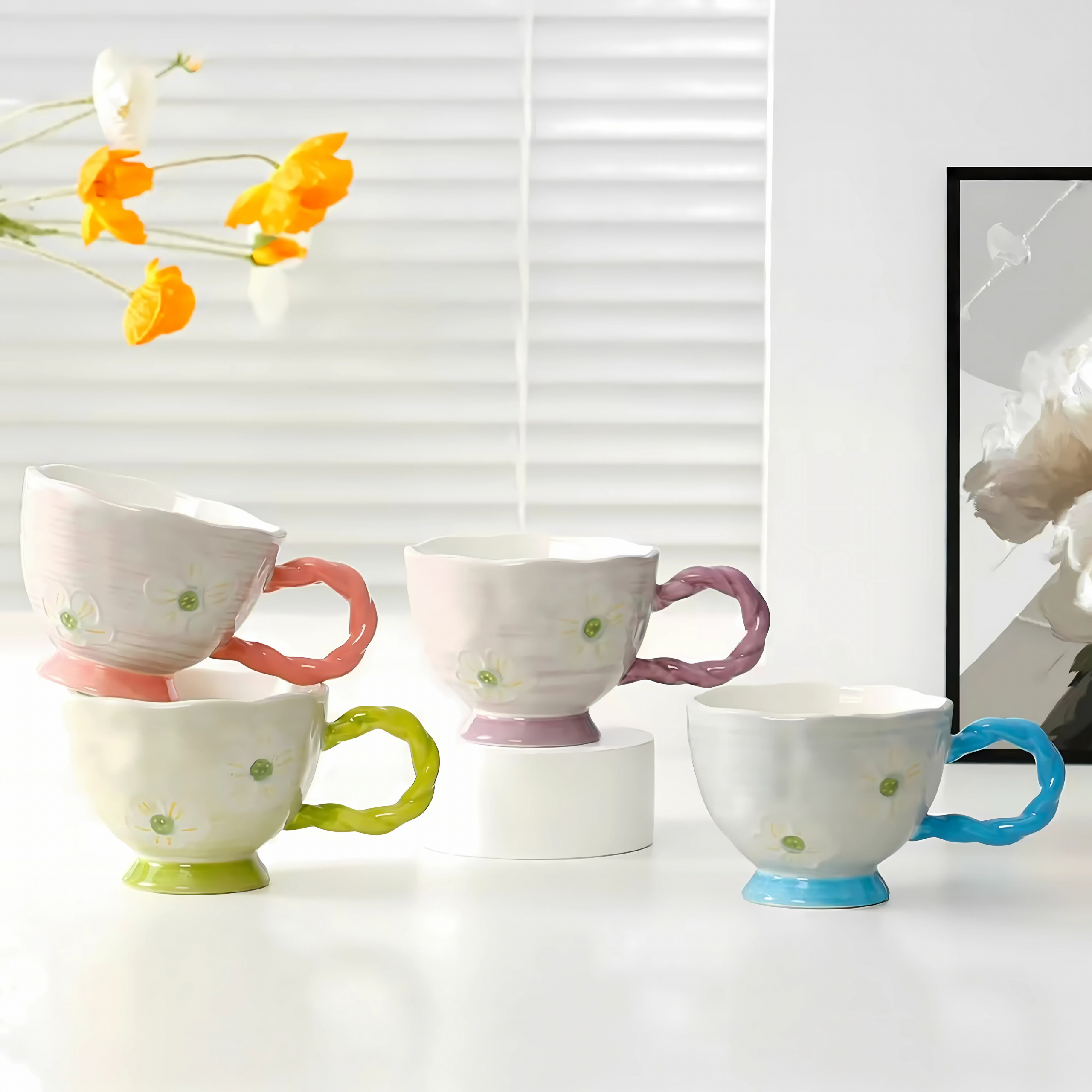 Start your day with charm and cheer! Our Lovely Floral Breakfast Mug features a delightful flower garden pattern and a unique twisted handle in soft pastel tones. Made from high-quality glazed ceramic, it’s perfect for sipping coffee, tea, juice, or your favorite breakfast beverage.