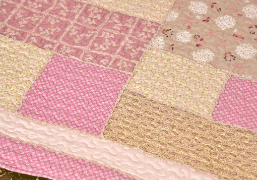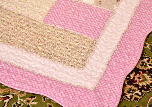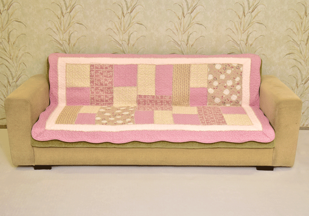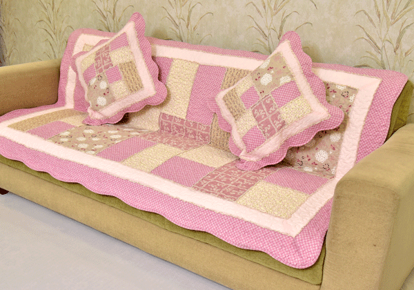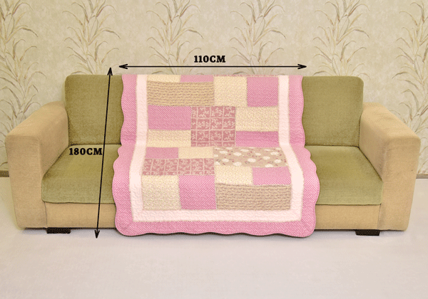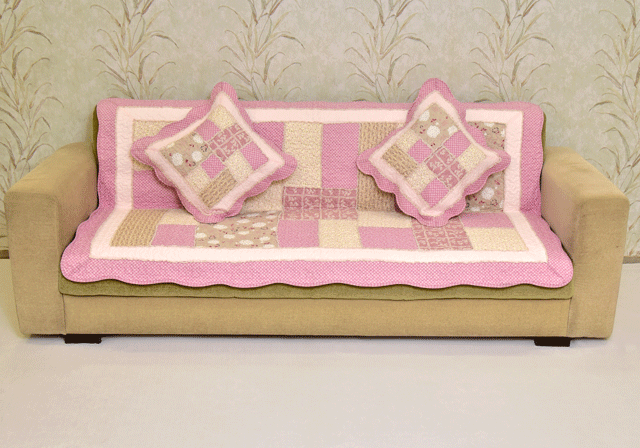 Classy Contemporary Floral Border Checks Patterned light Pink Quilted Sofa Cover/ Sujni