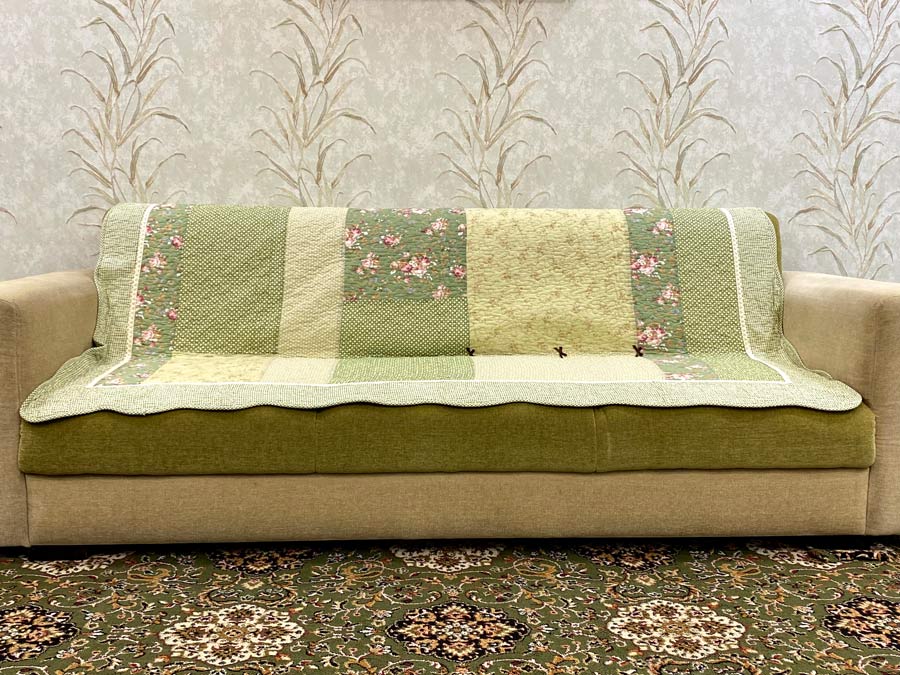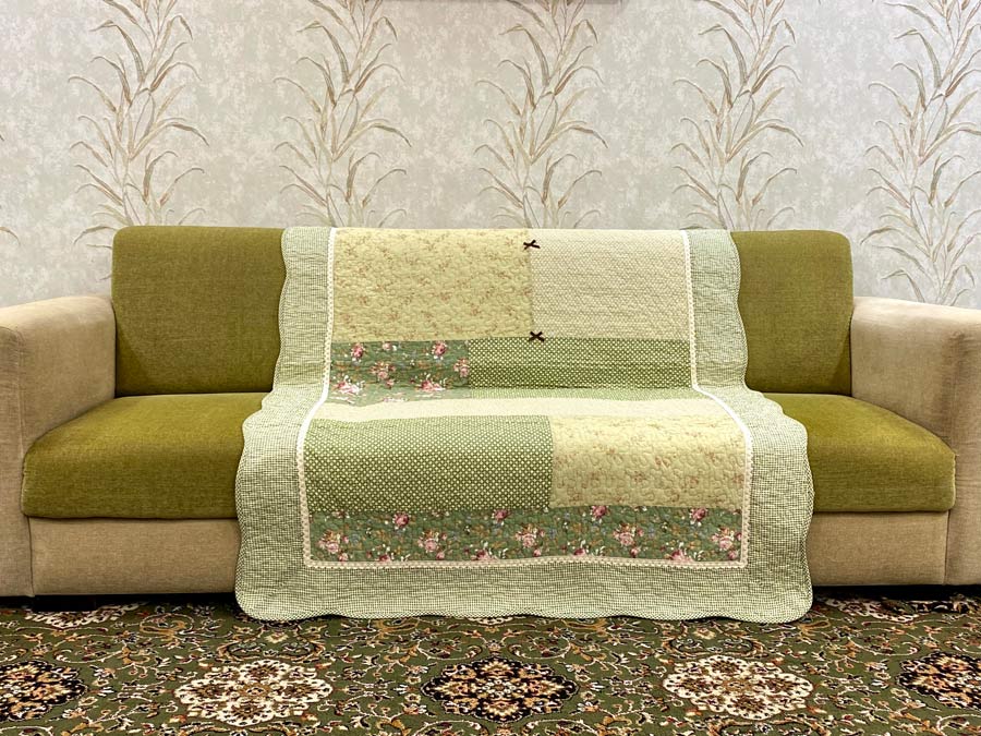 Classy Contemporary Floral Green Quilted Sofa Cover/ Sujni � 137