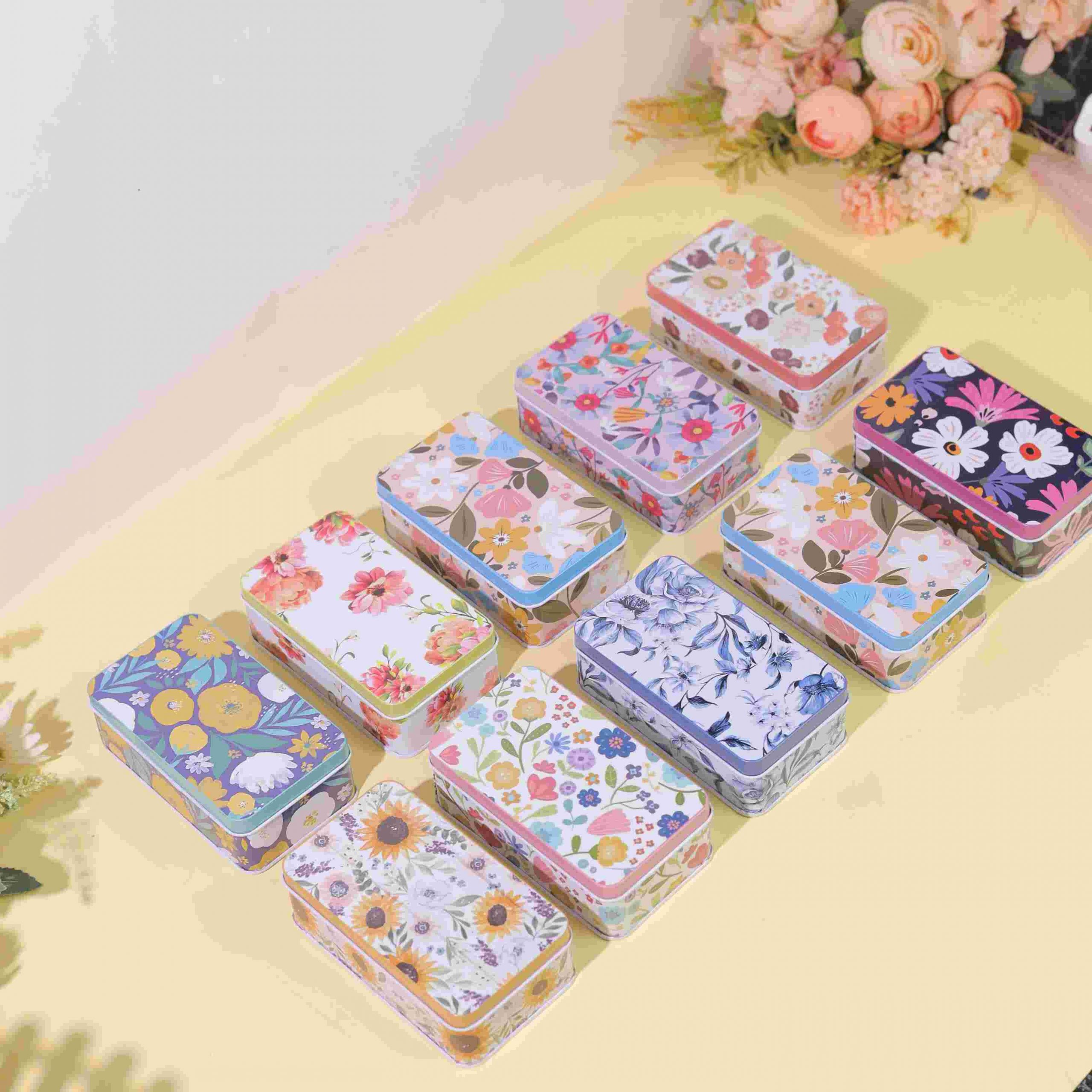 Floral Print Mini Rectangle Tin Box ( Pack Of 5 )