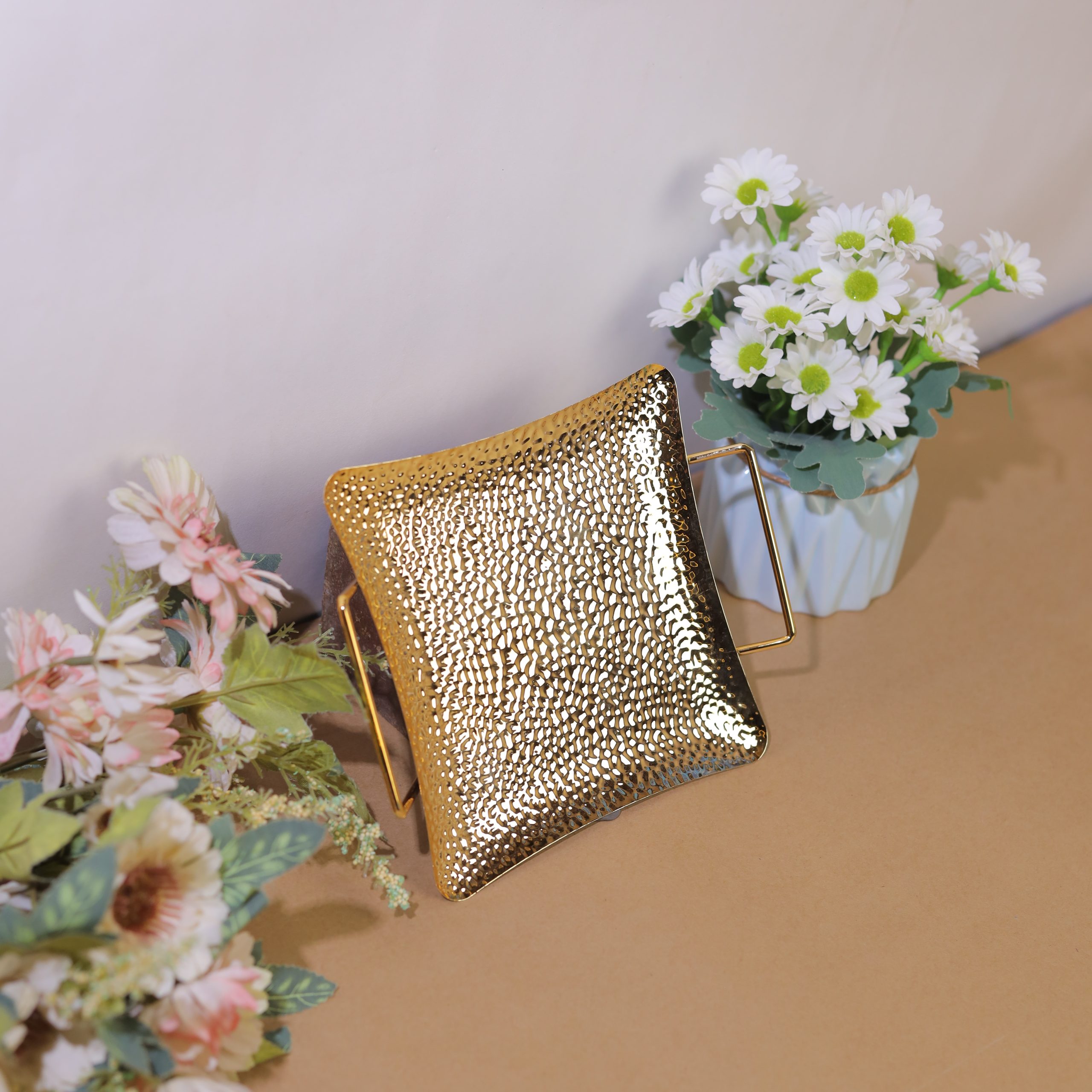 Gold Textured Metal Tray with Handles Square( Pack Of 2 )