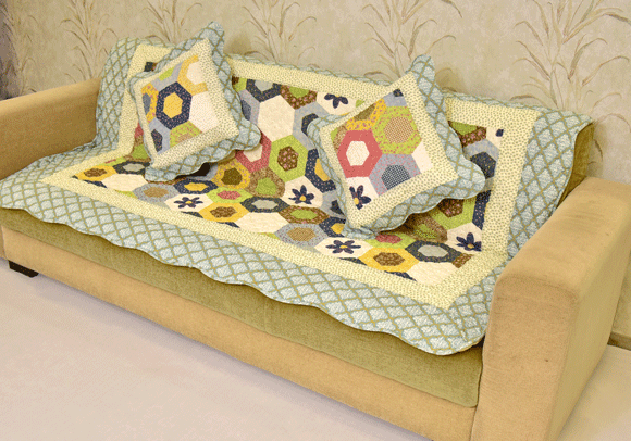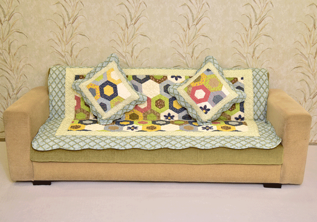 Multicolored Hexagon design Green Sujni/Sofa Cover