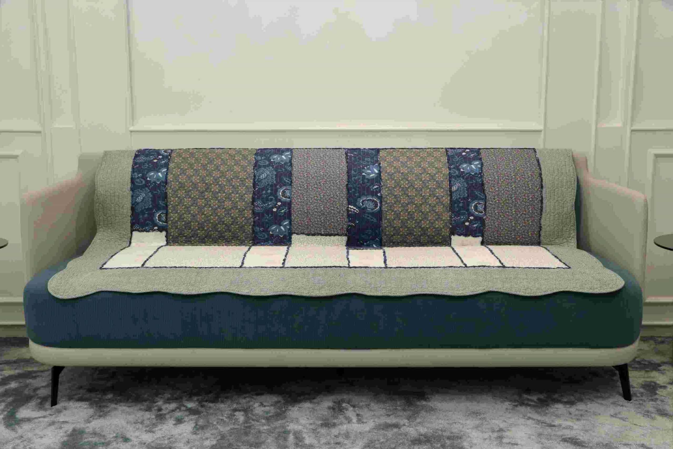 Sage green patterned quilted sofa sujni